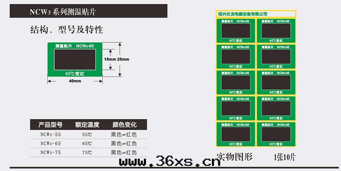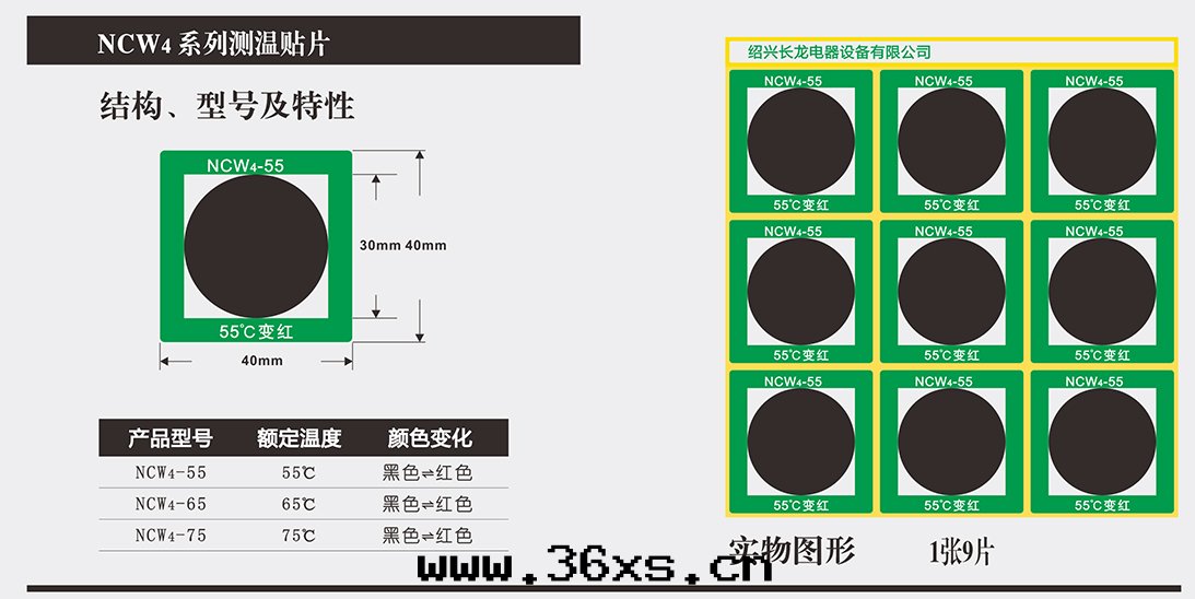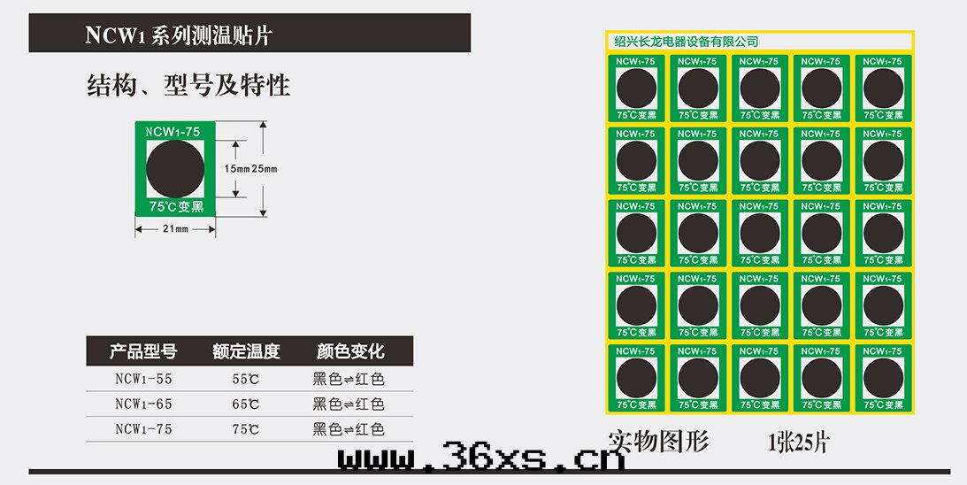 NCW系(xì)列可逆型變(biàn)色(sè)測温(wēn)贴片(piàn)具有独特(tè)的(de)變(biàn)色(sè)示温(wēn)、數字(zì)顯示及(jí)所(suǒ)變(biàn)顔色(sè)可逆功能(néng),自(zì)身带(dài)有不(bù)干胶(jiāo),應(yìng)用(yòng)于(yú)變(biàn)電(diàn)所(suǒ)室(shì)內(nèi)母線(xiàn)的(de)連(lián)接部(bù)位,也(yě)可贴在(zài)母線(xiàn)与设備接線(xiàn)端子的(de)連(lián)接處(chù)及(jí)隔離開(kāi)关的(de)觸头(tóu)上(shàng),還(huán)可贴在(zài)變(biàn)壓器、電(diàn)機(jī)、電(diàn)容器等電(diàn)气(qì)设備的(de)外(wài)殼(ké)上(shàng),用(yòng)来(lái)監視母線(xiàn)連(lián)接處(chù)及(jí)電(diàn)气(qì)设備外(wài)殼(ké)的(de)温(wēn)度(dù)。一(yī)旦監温(wēn)部(bù)位温(wēn)度(dù)达(dá)到(dào)或(huò)超过(guò)測温(wēn)贴片(piàn)的(de)额定温(wēn)度(dù),變(biàn)色(sè)測温(wēn)贴片(piàn)立即由(yóu)黑(hēi)色(sè)變(biàn)紅(hóng)色(sè),並(bìng)在(zài)測温(wēn)贴片(piàn)上(shàng)顯示該處(chù)超温(wēn)的(de)數字(zì),很容易被(bèi)人(rén)在(zài)巡視中(zhōng)發(fà)現(xiàn)監温(wēn)部(bù)位温(wēn)度(dù)升(shēng)高(gāo)的(de)狀況,從而(ér)找(zhǎo)出(chū)故障隐患,防止事(shì)故的(de)發(fà)生(shēng)。