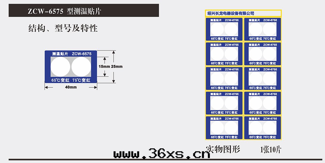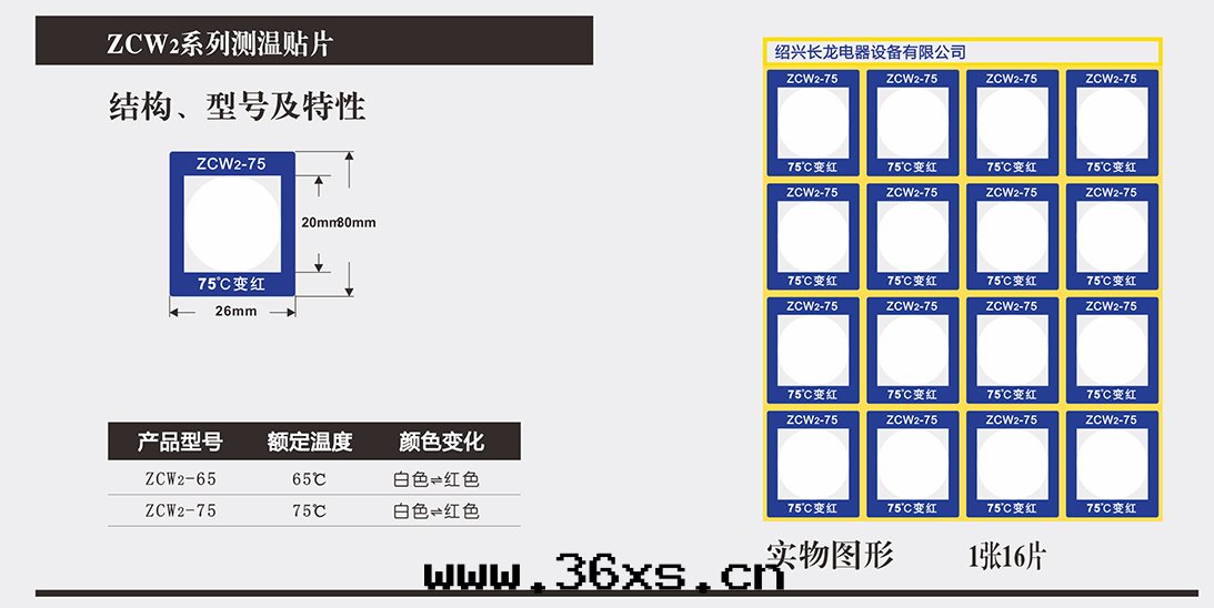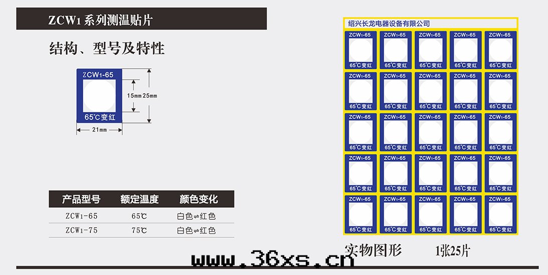 2.使用(yòng)时(shí)如(rú)欲知道(dào)監温(wēn)部(bù)位温(wēn)度(dù)逐漸上(shàng)升(shēng)的(de)情(qíng)況,可粘贴两(liǎng)片(piàn)以(yǐ)上(shàng)不(bù)同(tóng)额定温(wēn)度(dù)的(de)變(biàn)色(sè)測温(wēn)贴片(piàn),亦可使用(yòng)ZCW-6575贴片(piàn)。