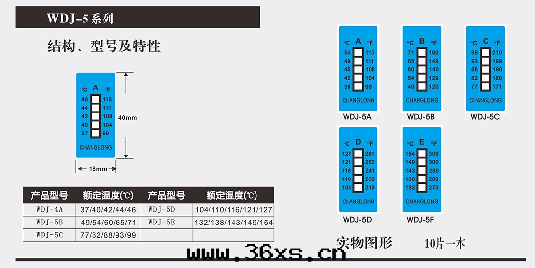 WDJ系(xì)列測温(wēn)紙(zhǐ),粘合性(xìng)強(qiáng),粘贴方(fāng)便,超温(wēn)變(biàn)色(sè)後(hòu)顔色(sè)不(bù)可逆,具有記(jì)录(lù)功能(néng)。參照中(zhōng)國(guó)铁(tiě)路(lù)總(zǒng)公(gōng)司TJ/CL442-2015《铁(tiě)路(lù)客車電(diàn)線(xiàn)電(diàn)缆(lǎn)用(yòng)感(gǎn)温(wēn)贴暫行技術(shù)条(tiáo)件(jiàn)》标(biāo)準生(shēng)产,並(bìng)通(tòng)过(guò)國(guó)家(jiā)權威機(jī)構的(de)品質(zhì)檢測。