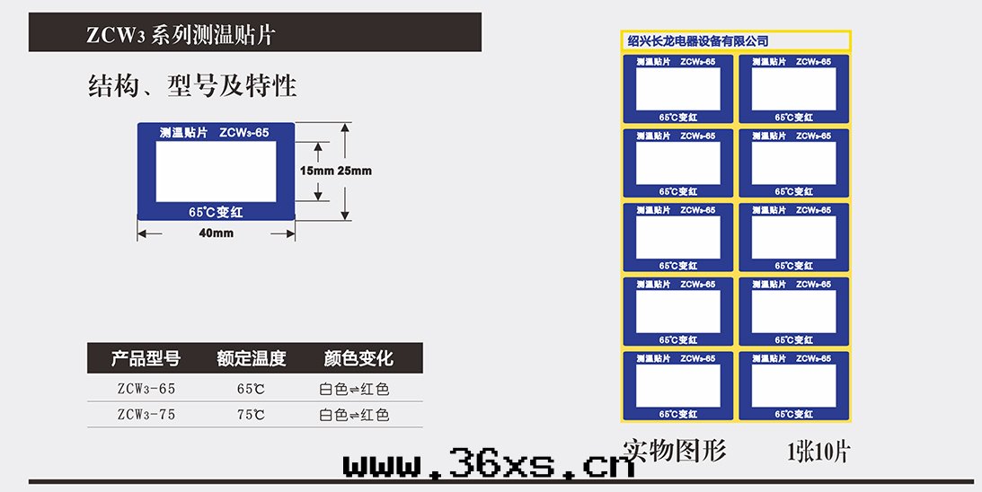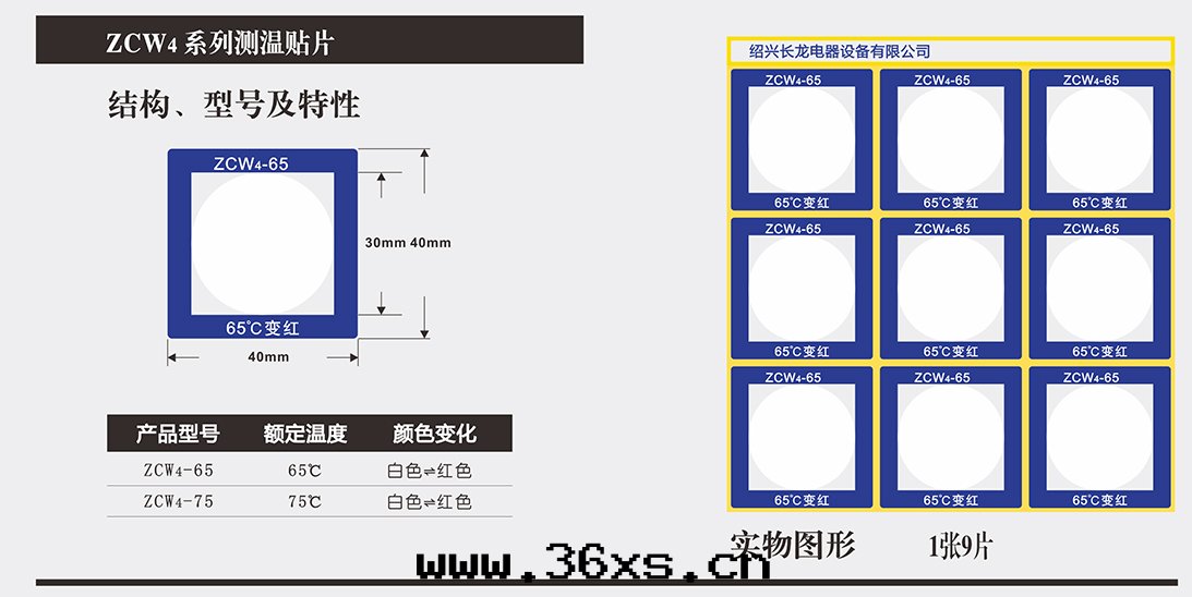 2.使用(yòng)时(shí)如(rú)欲知道(dào)監温(wēn)部(bù)位温(wēn)度(dù)逐漸上(shàng)升(shēng)的(de)情(qíng)況,可粘贴两(liǎng)片(piàn)以(yǐ)上(shàng)不(bù)同(tóng)额定温(wēn)度(dù)的(de)變(biàn)色(sè)測温(wēn)贴片(piàn),亦可使用(yòng)ZCW-6575贴片(piàn)。